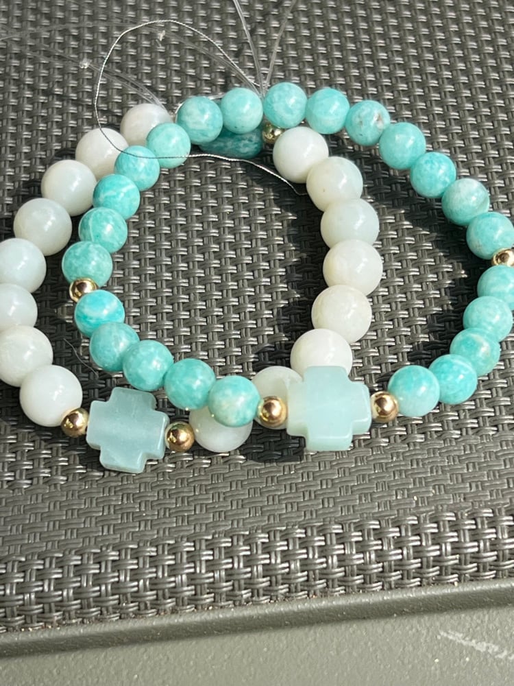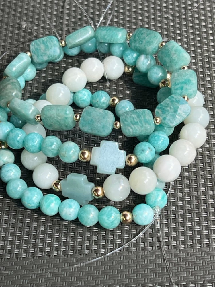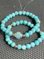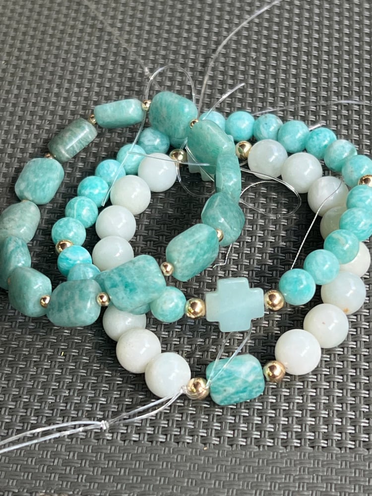 Réalisé en Amazonite et perles en gold filled 14k, il apporte une touche poétique à ce moment sacré.