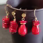 CORALDISKGOLD 5Disques irréguliers Corail rouge Monture goldfilled (crochet ou aimant à préciser)