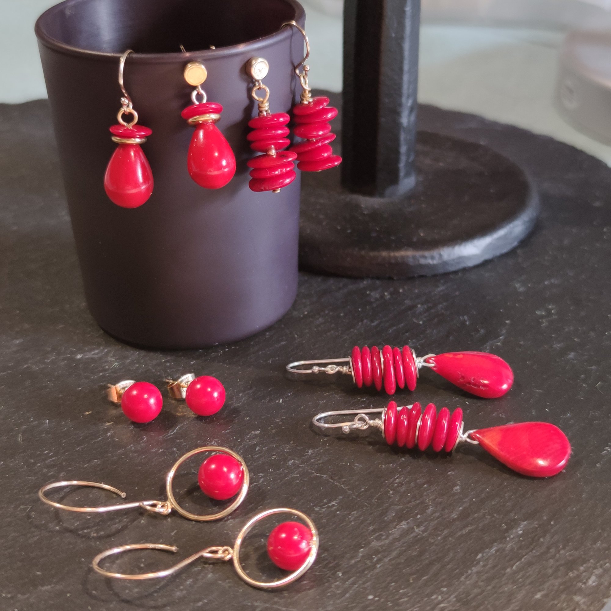 Boucles en Corail rouge teintė