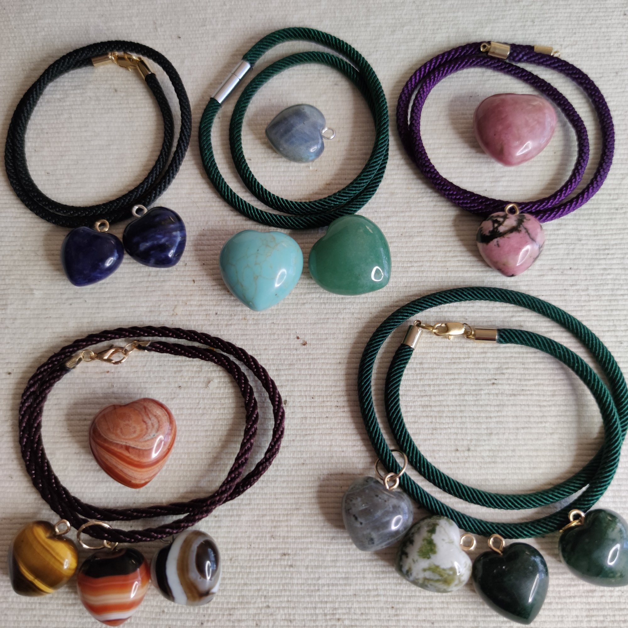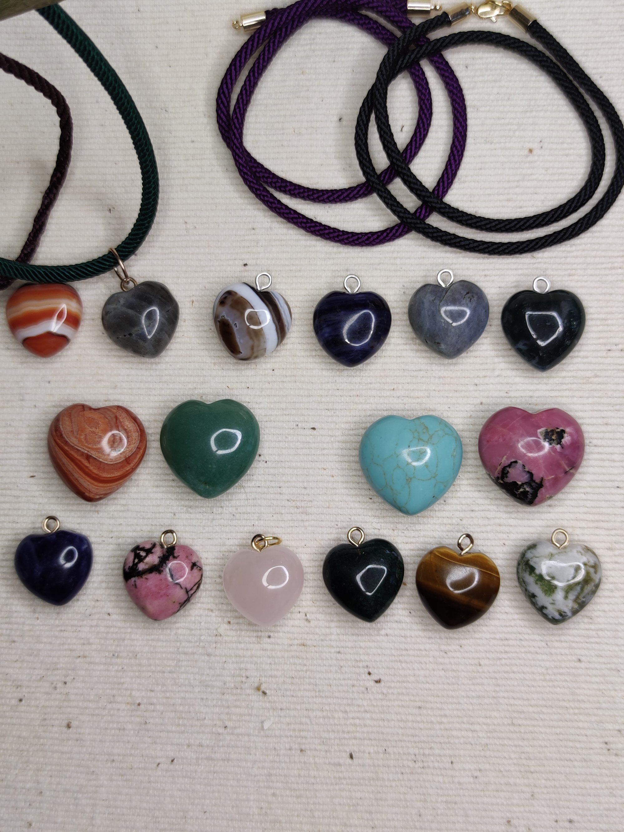 Coeur en pierre naturelles 26mm avec cordon assorti