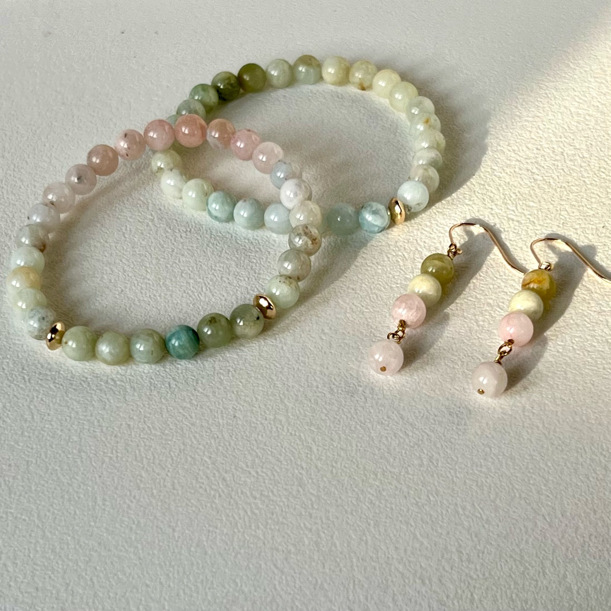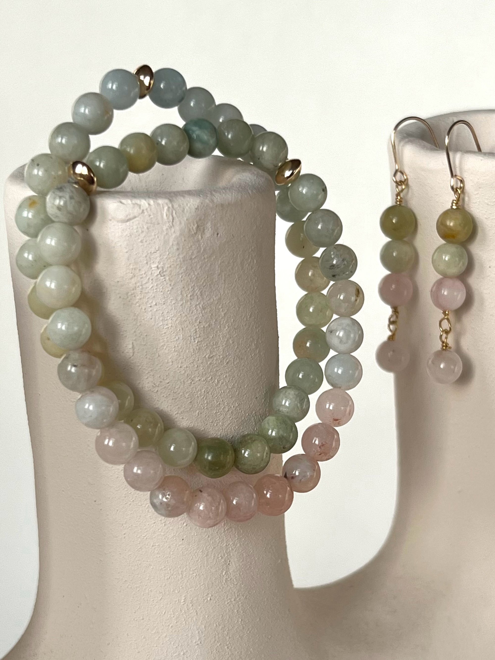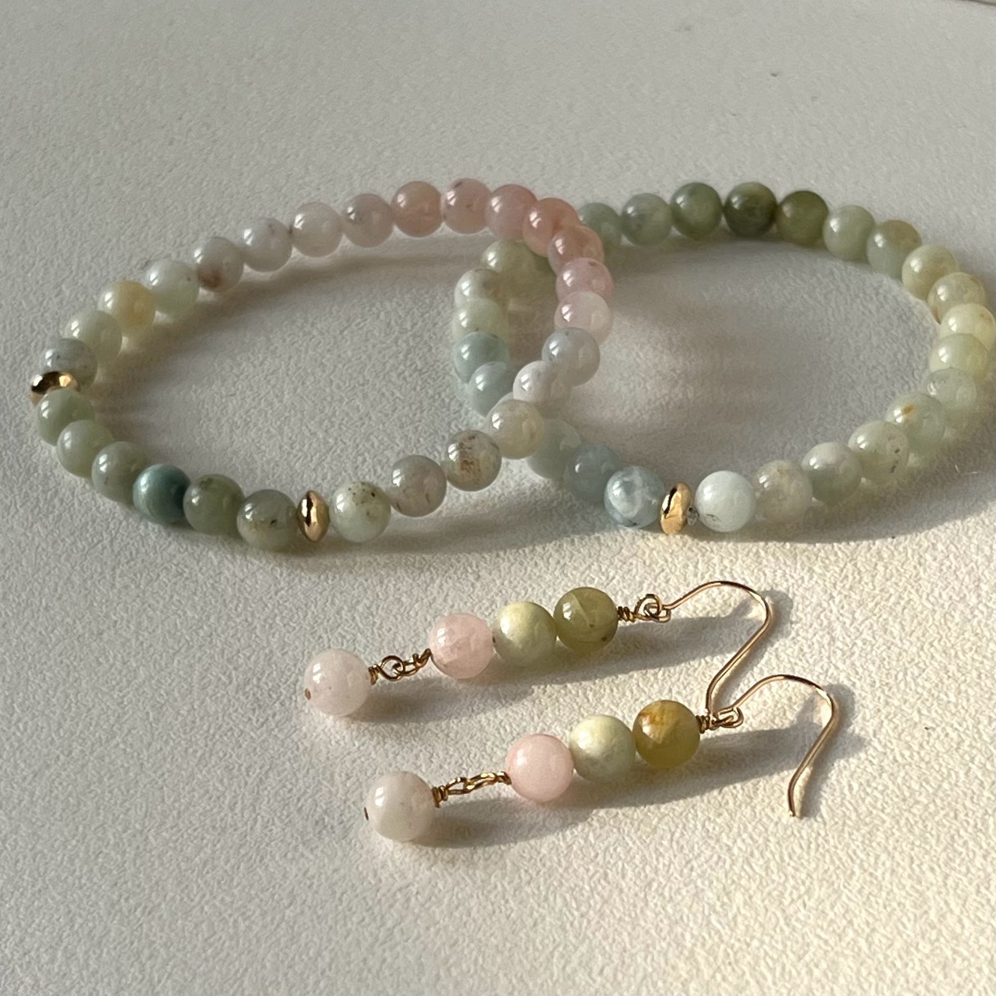 Bracelet unique aux couleurs subtiles en morganite pierre semi précieuse de la famille des béryls
