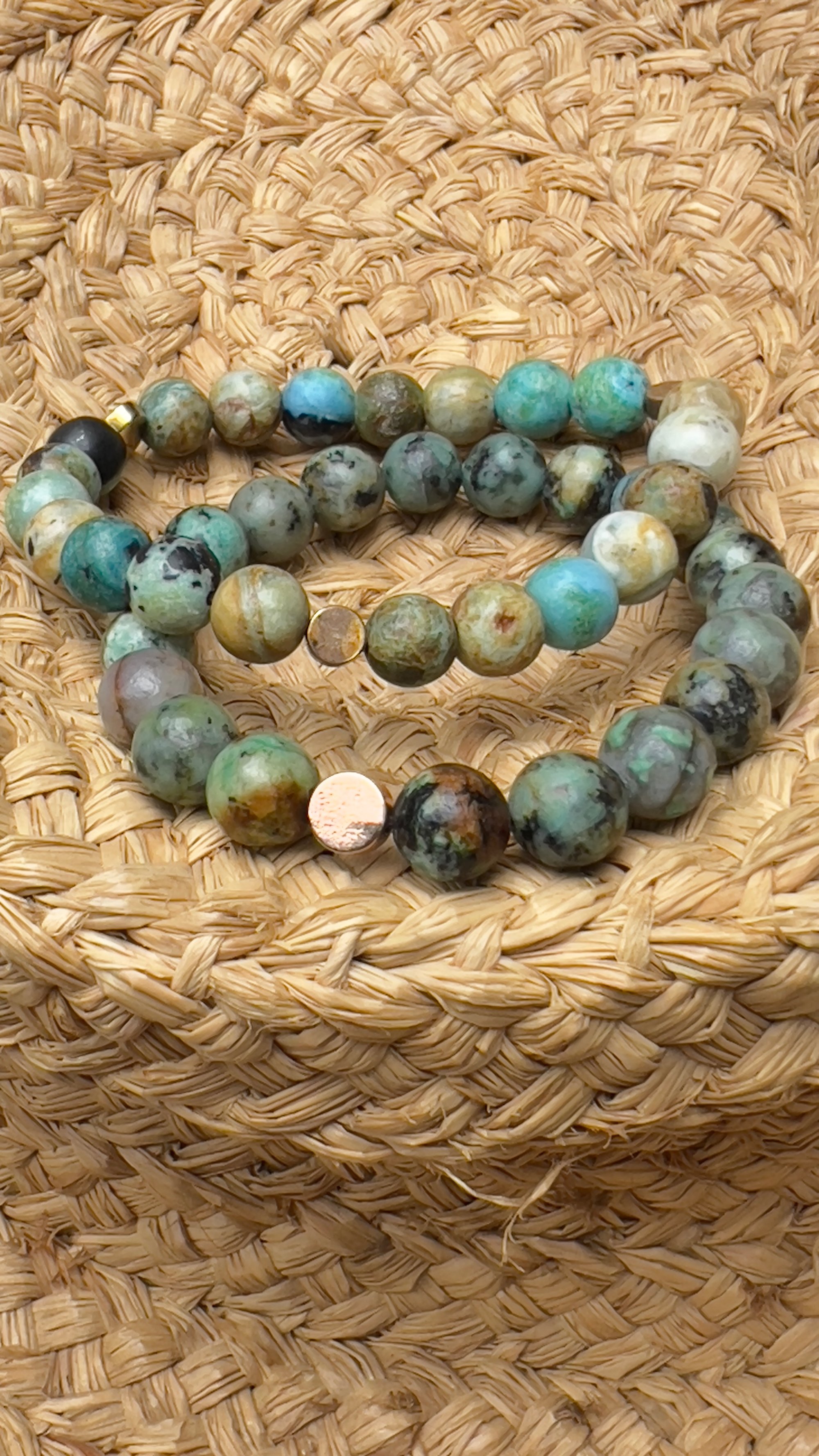 Bracelet Turquoise africaine sur élastique (chaque bracelet est unique et réalisé a la demande selon votre tour de poignet)